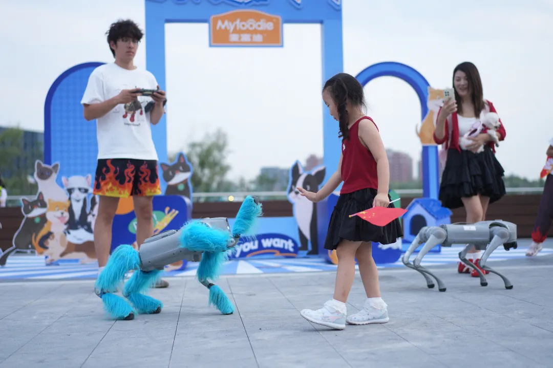 作为开幕日的亮点活动,“智慧乐跑”吸引了数百名跑友参与。活动创新性地引入宇树人形机器人G1与机器狗Go2作为“陪跑官”,它们不仅能根据跑者速度自适应配速,更能灵活避障,全程陪伴。将前沿机器人技术从实验室带入公共空间,生动演绎了“科创改变生活”的主题,为传统体育活动注入了未来感、科技感。