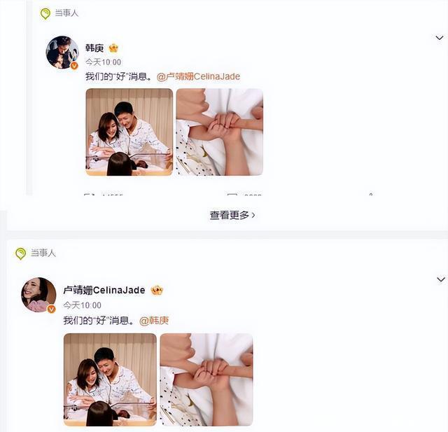 最后就是韩庚和卢靖姗了,从怀孕就开始分享,今天早上终于尘埃落定,迎来他们的孩子,凑成一个“好”字。